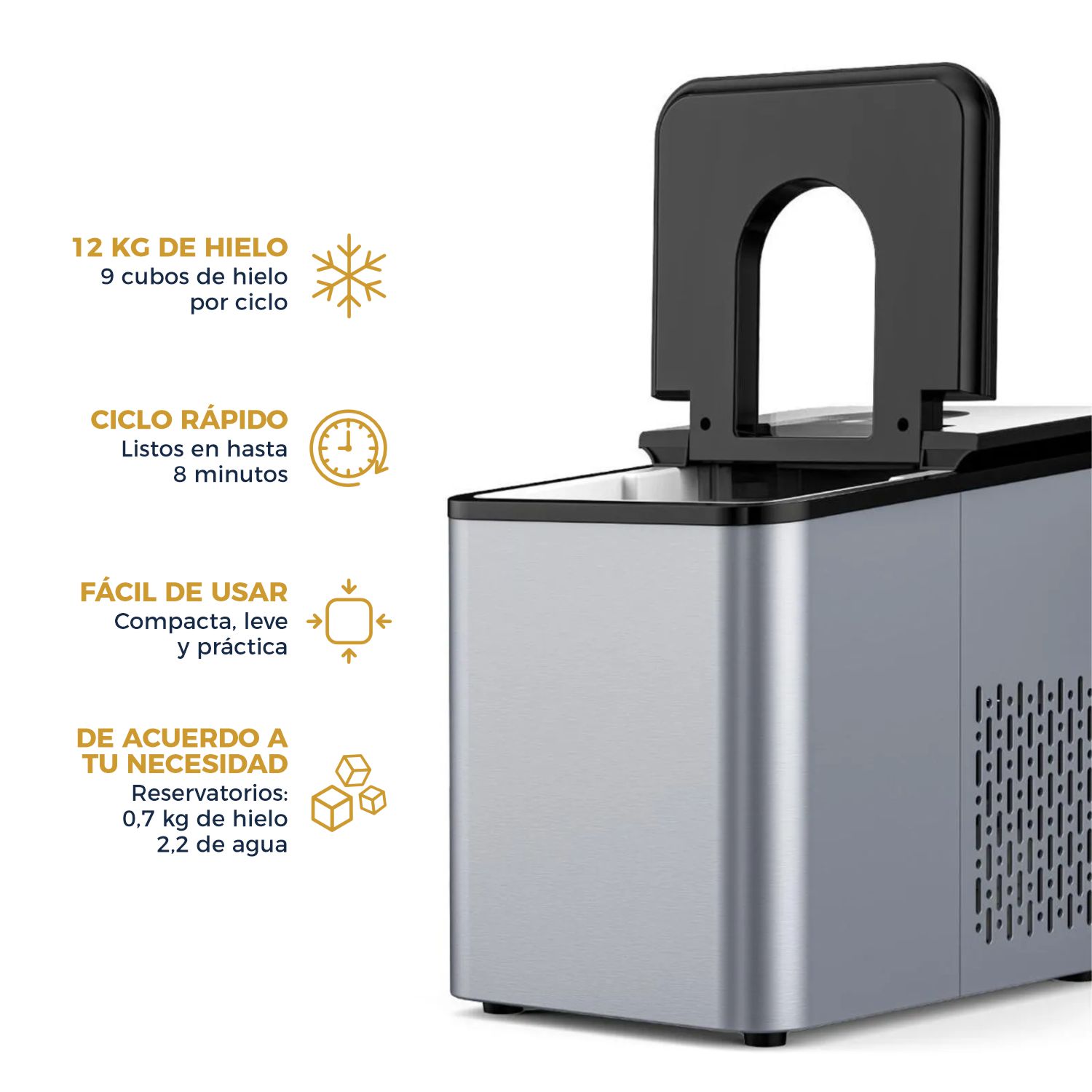 • Capacidad del depósito de hielo: 0,700 g