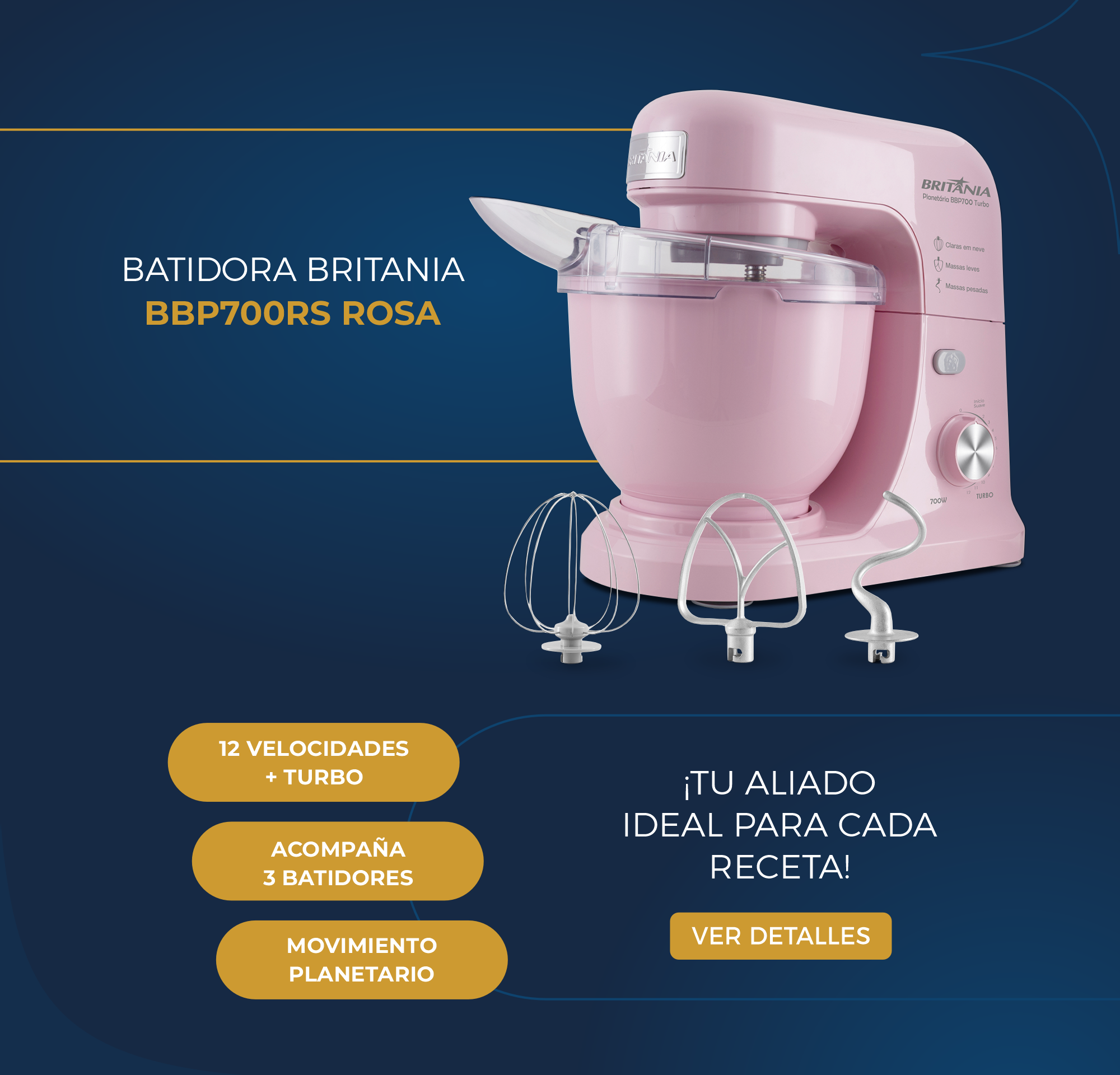 Batidora Planetaria Britania BBP700RS 700W ROSA – 220V – 9836